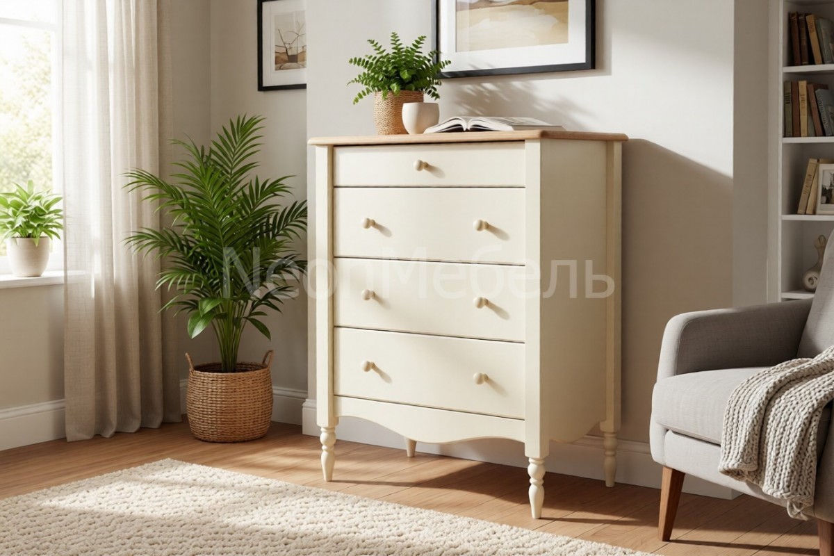 Материал изготовления: массив сосны. Дно у ящиков и задняя стенка ДВП белого цвета.