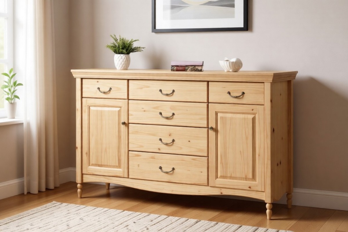 Материал изготовления: массив сосны. Дно у ящиков и задняя стенка: ДВП белого цвета.