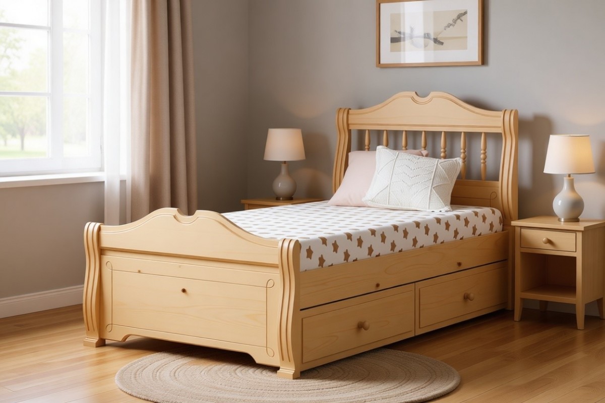 Материал изготовления: массив сосны. Основание под матрас: деревянный реечный настил.