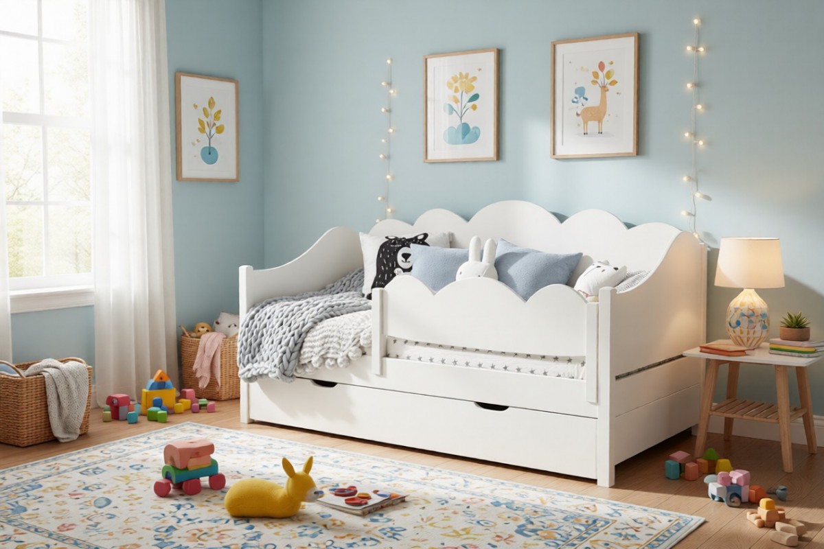 * Матрас, подкроватные ящики, съёмные бортики, текстиль и другие предметы интерьера в комплект не входят (можно заказать отдельно)