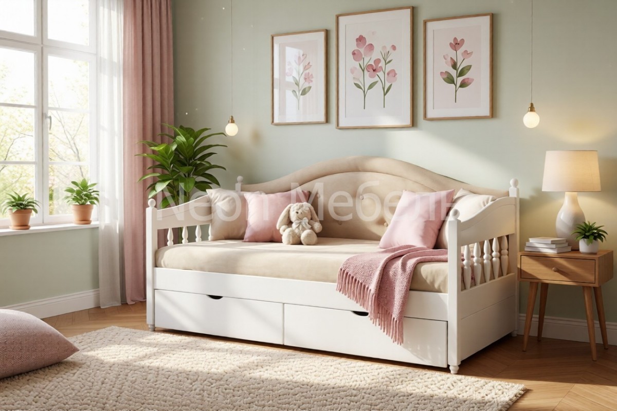 Кровать-тахта Айно №6 с мягкой спинкой и двумя ящиками