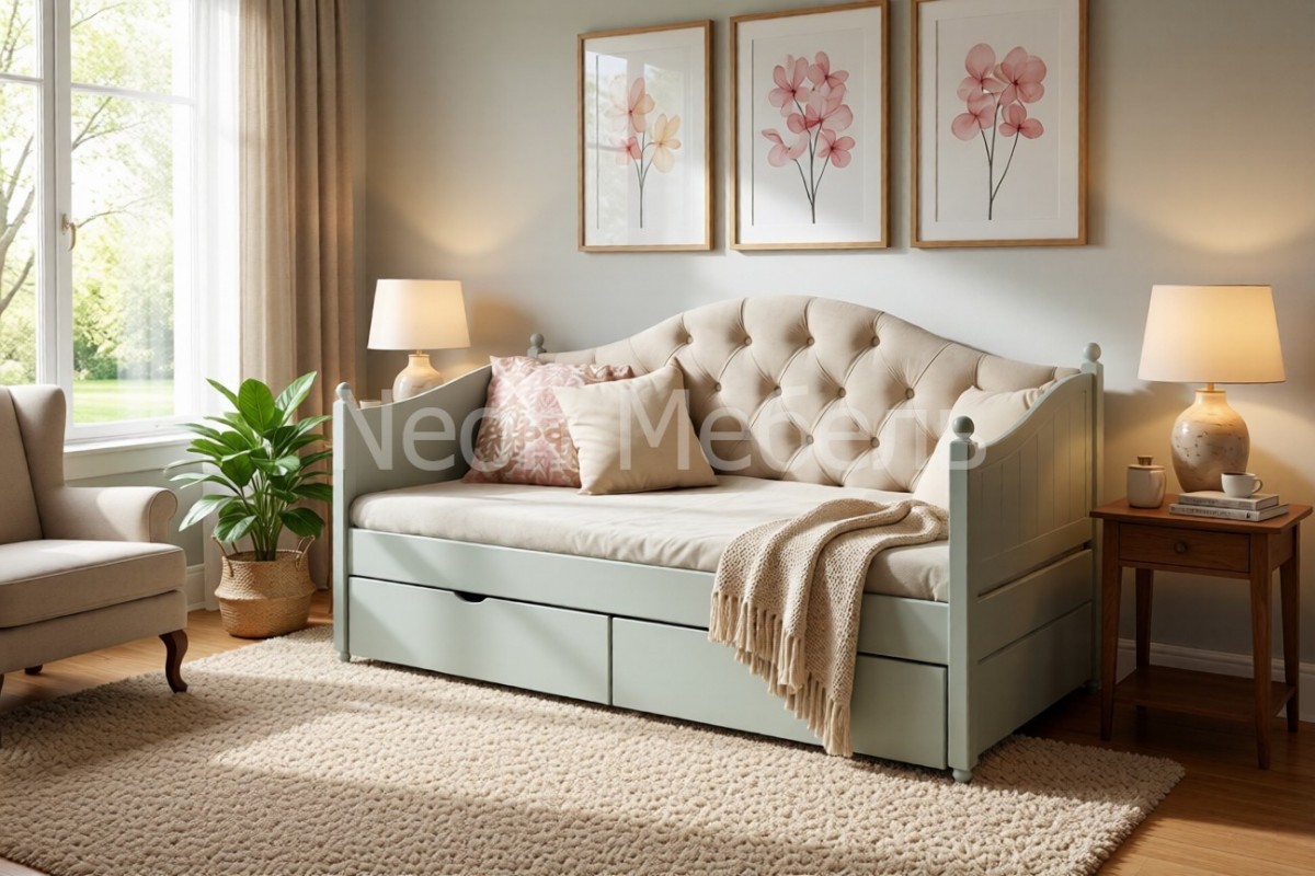 Кровать-тахта Айно №8 с мягкой спинкой и двумя ящиками
