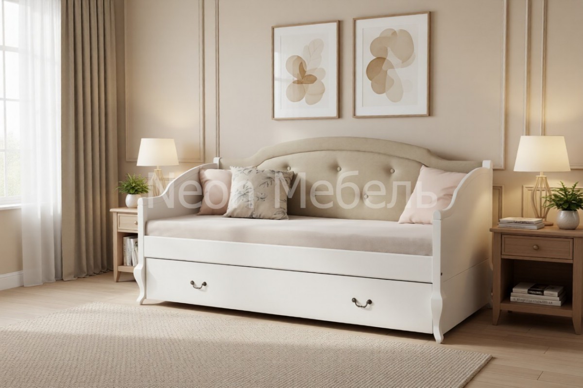 Кровать-тахта Ари-Прованс №11 с мягкой спинкой и одним ящиком