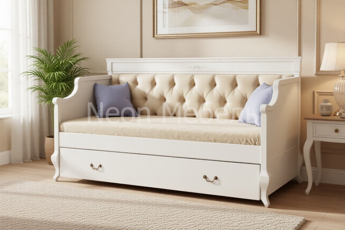 Кровать-тахта Ари-Прованс №19 с мягкой спинкой и одним ящиком