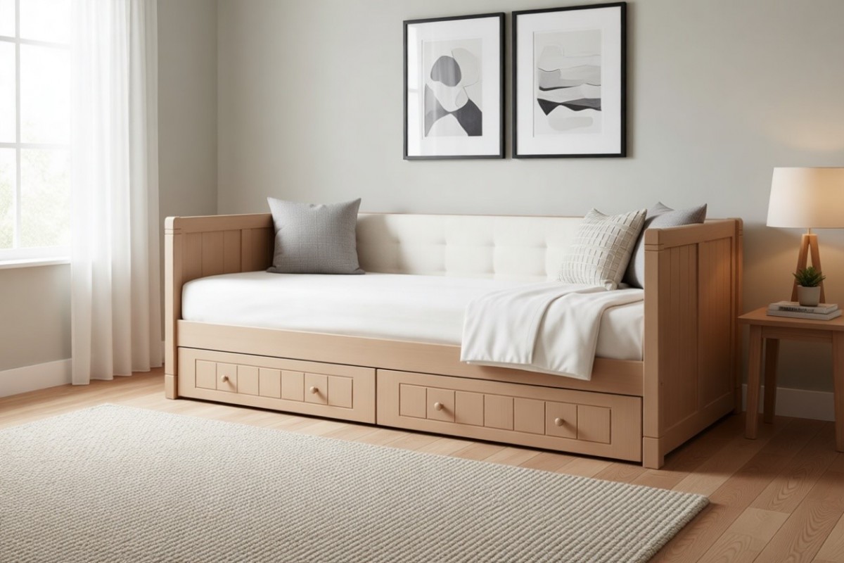Кровать-тахта Дания №3 с мягкой спинкой и двумя ящиками.