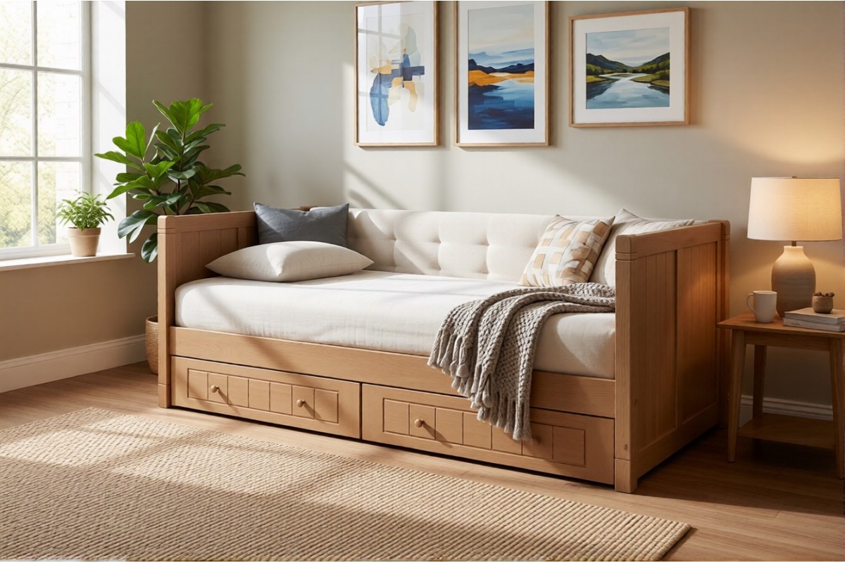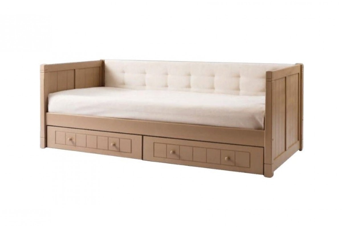 Кровать-тахта Дания №3 с мягкой спинкой и двумя ящиками.
