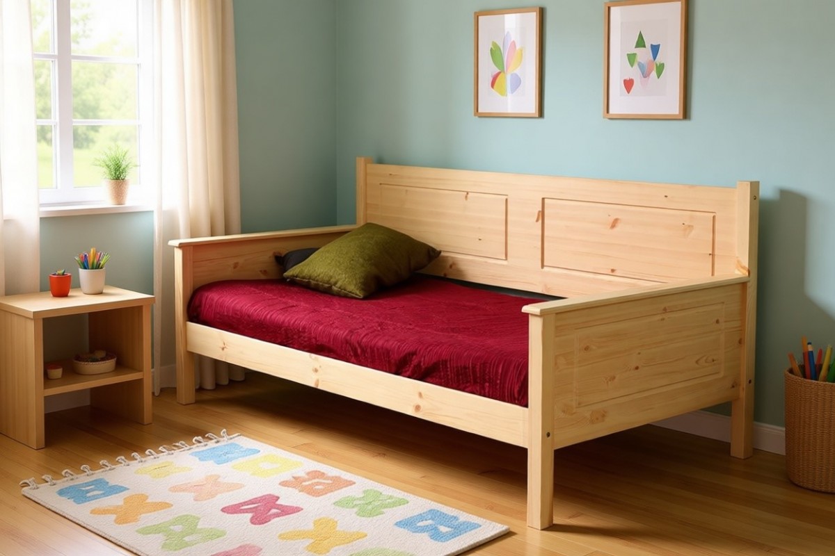 Материал изготовления: массив сосны. Основание под матрас: деревянный реечный настил.