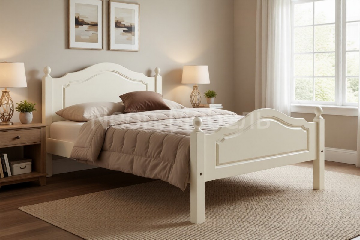 Габаритные размеры кровати: в ширину +80 мм. к размеру спального места, в длину +110 мм. к размеру спального места. Высота изголовья - 870 мм., высота изножья - 580 мм. Расстояние от пола до царги 215 мм.