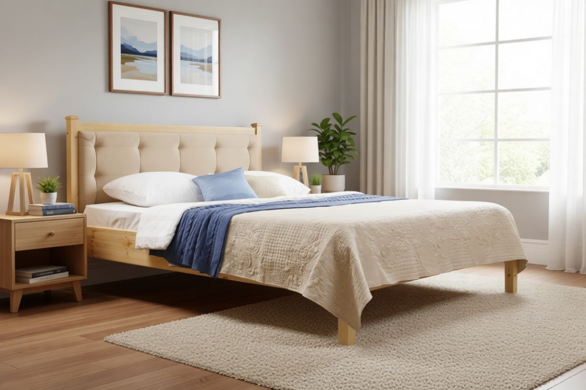 Материал изготовления: массив сосны. Основание под матрас: деревянный реечный настил.