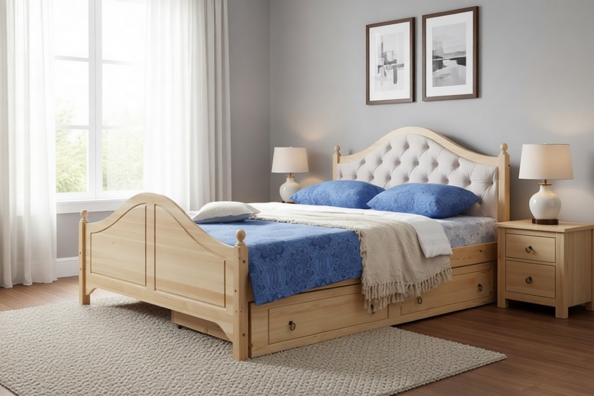 Материал изготовления: массив сосны. Основание под матрас: деревянный реечный настил.