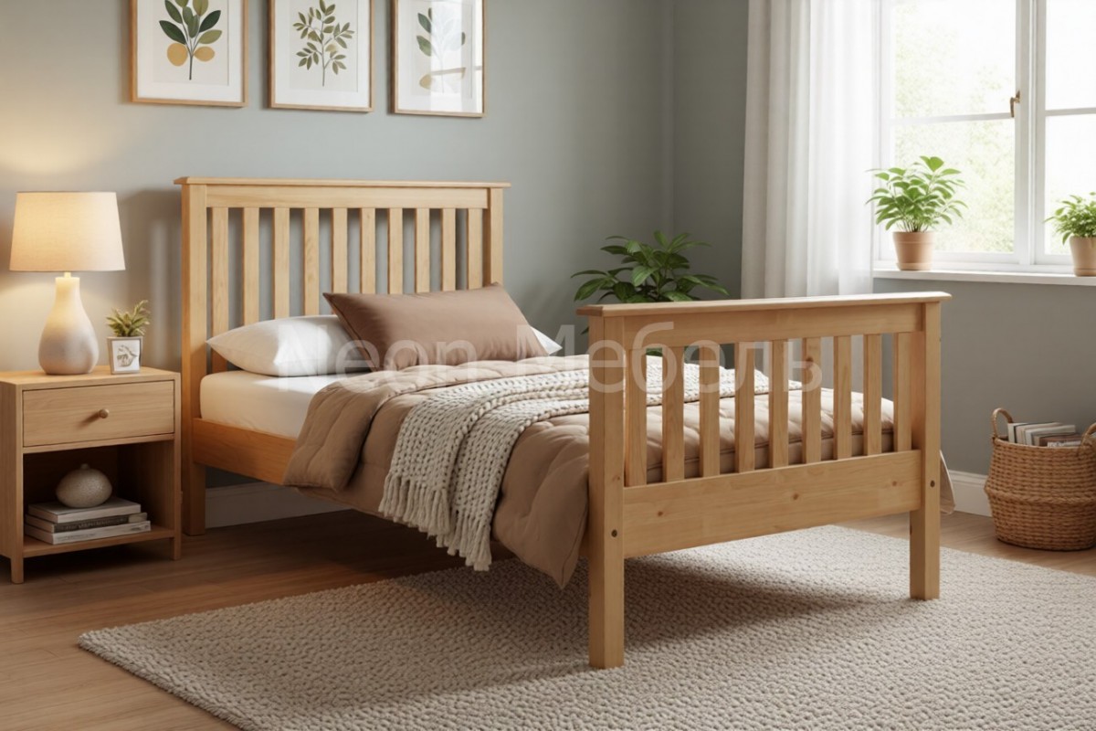 Материал изготовления: массив сосны. Основание под матрас: деревянный реечный настил.