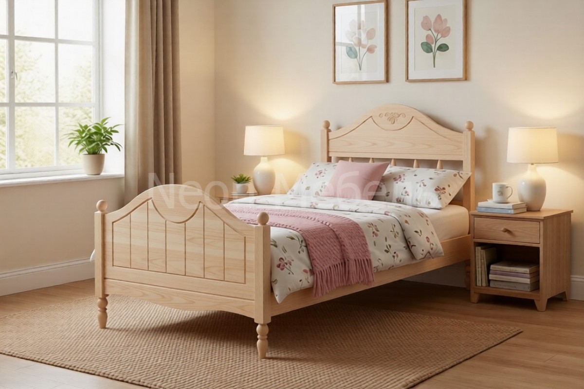Материал изготовления: массив сосны. Основание под матрас: деревянный реечный настил.