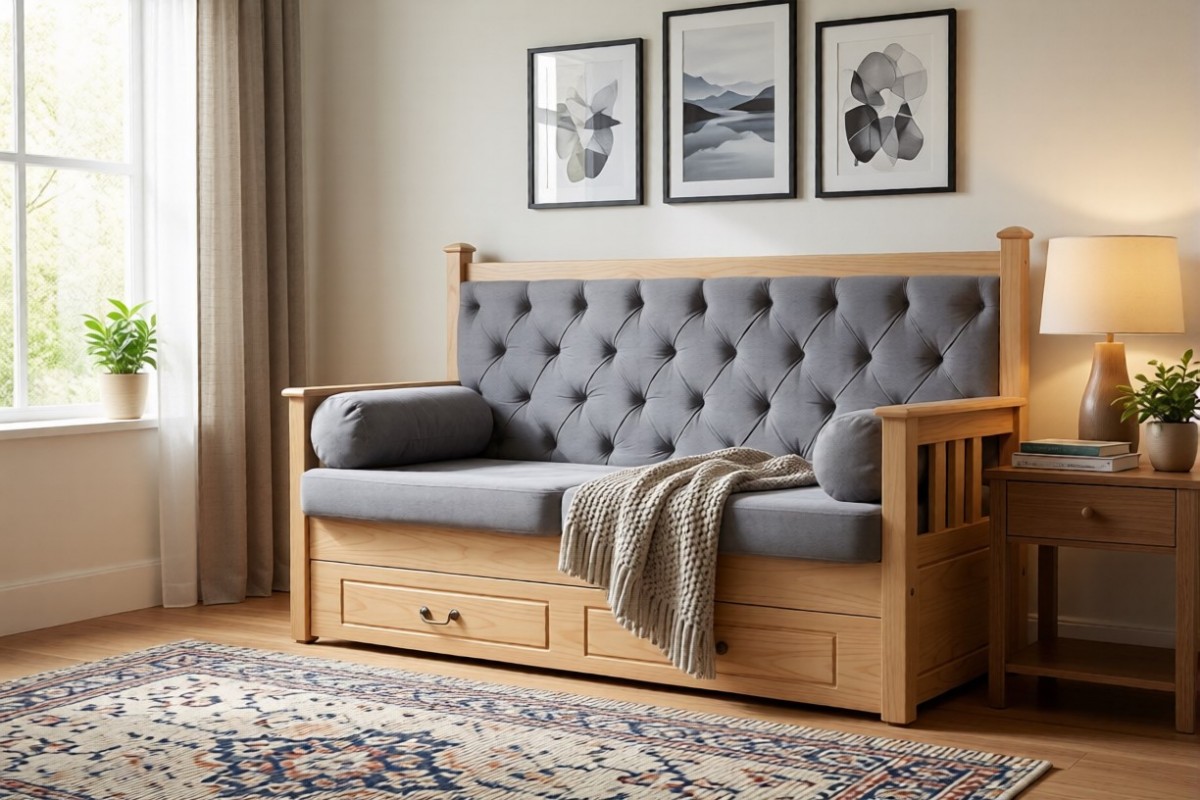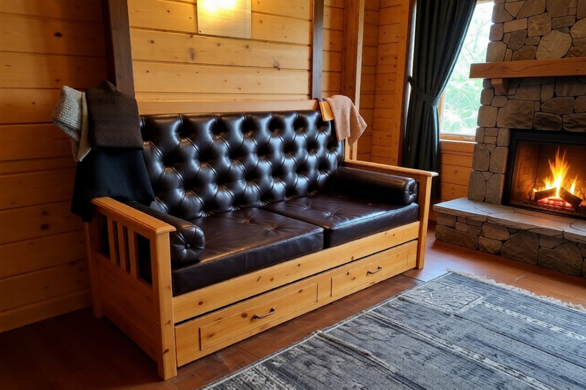 Дополнительно можно заказать мягкие валики (как на фото). Для обивки спинки и подушек предлагается ткани и экокожа. Вариант отделки мягкой спинки - каретная стяжка.