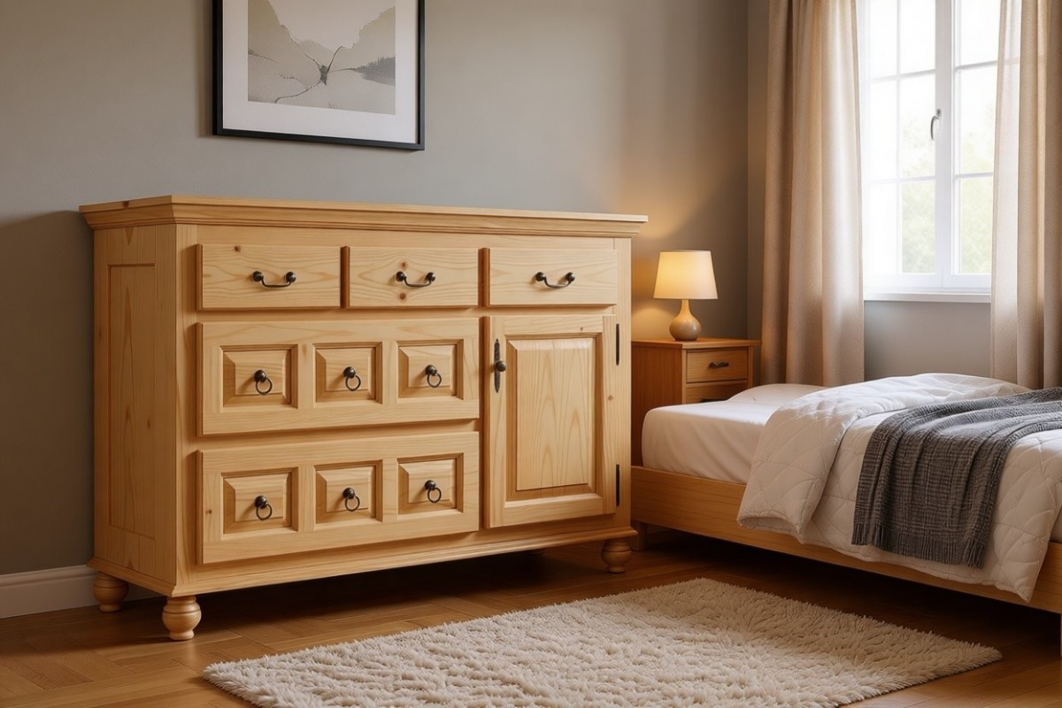 Материал изготовления: массив сосны. Дно у ящиков и задняя стенка: ДВП белого цвета.