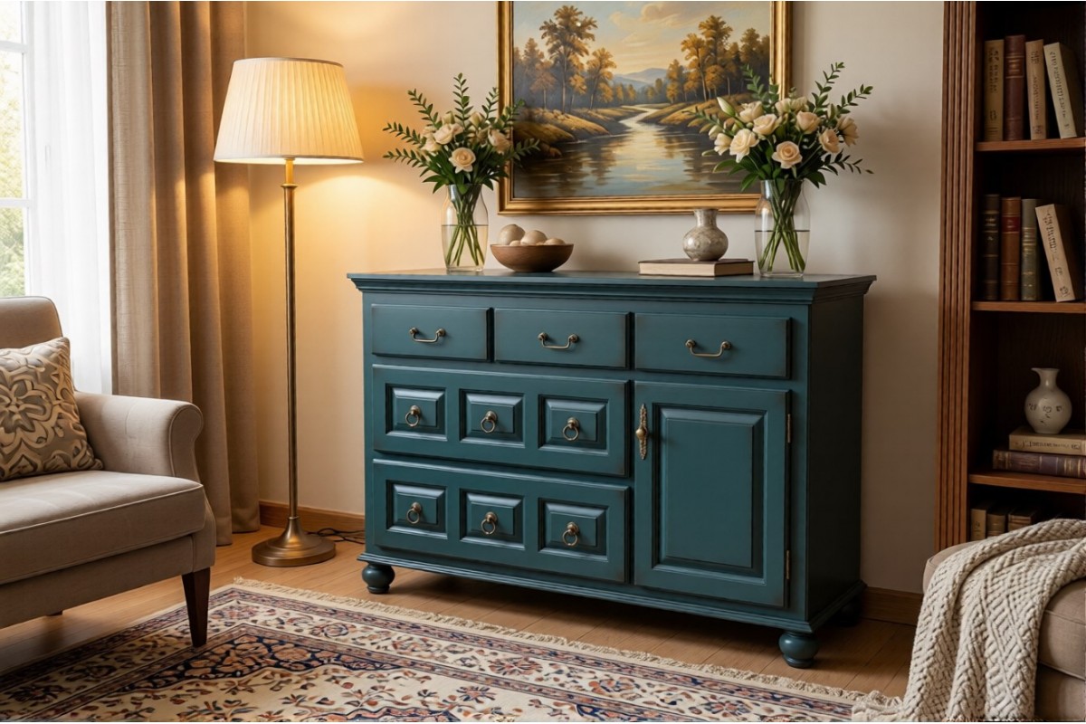Наполнение: пять выдвижных ящиков и закрытое отделение с полкой.