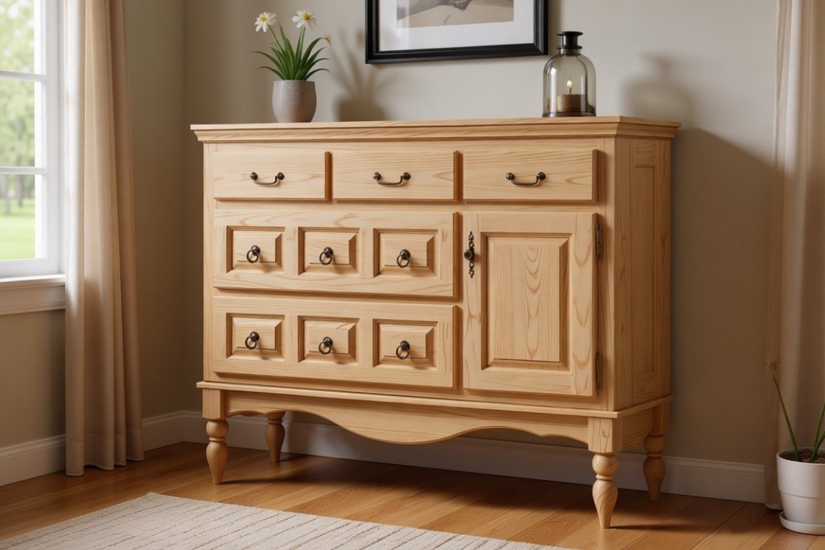 Материал изготовления: массив сосны. Дно у ящиков и задняя стенка: ДВП белого цвета.