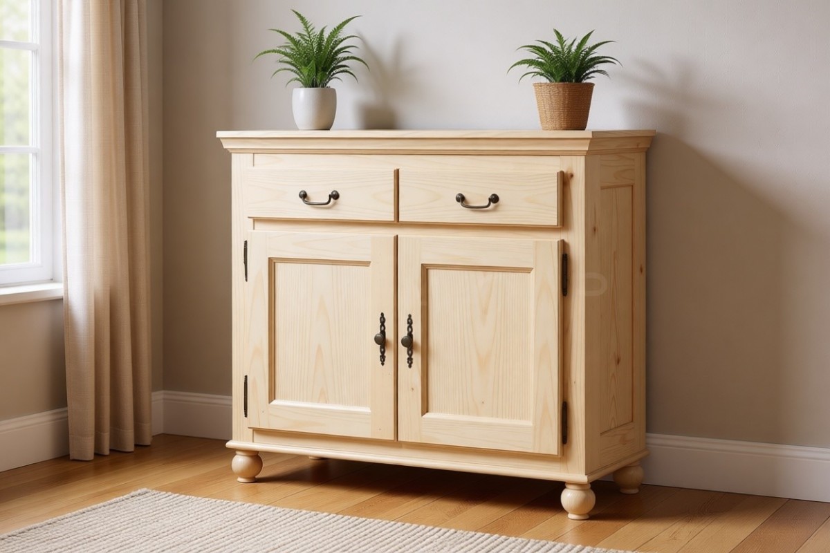 Материал изготовления: массив сосны. Дно у ящиков и задняя стенка: ДВП белого цвета.