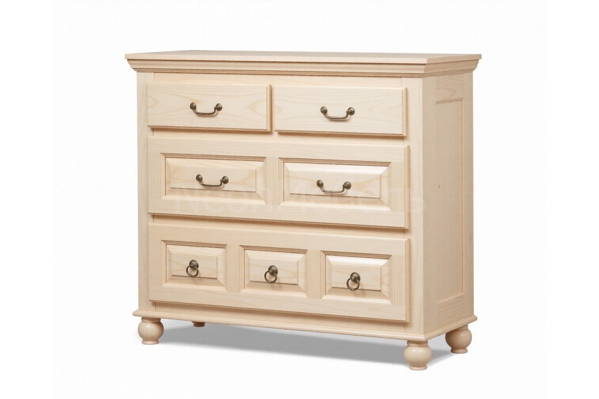 Материал изготовления: массив сосны. Дно у ящиков и задняя стенка: ДВП белого цвета.