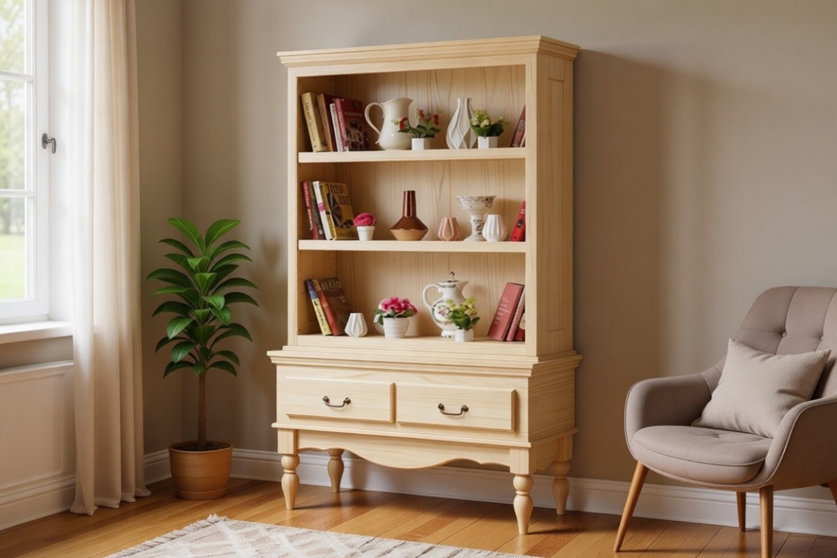 Наполнение: два выдвижных ящика и две полки из массива (полки переставные - три уровня высоты)