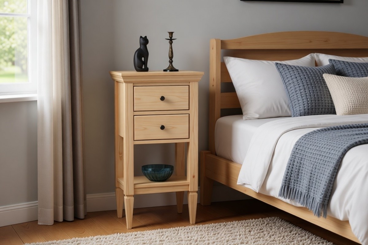 Материал изготовления: массив сосны. Дно у ящика и задняя стенка: ДВП белого цвета.