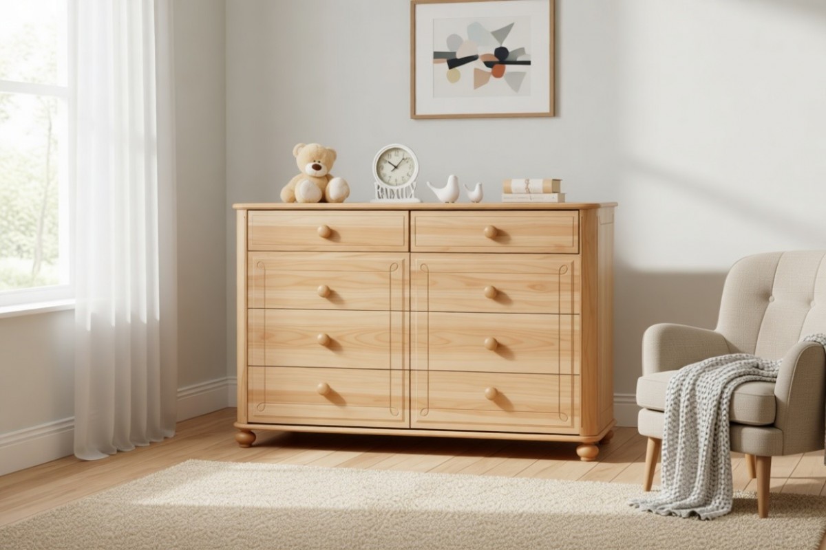 Материал изготовления: массив сосны. Задняя стенка и дно у ящиков ДВП белого цвета.