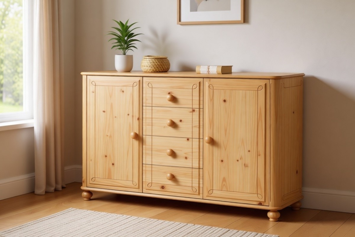 Материал изготовления: массив сосны. Задняя стенка и дно у ящиков ДВП белого цвета.