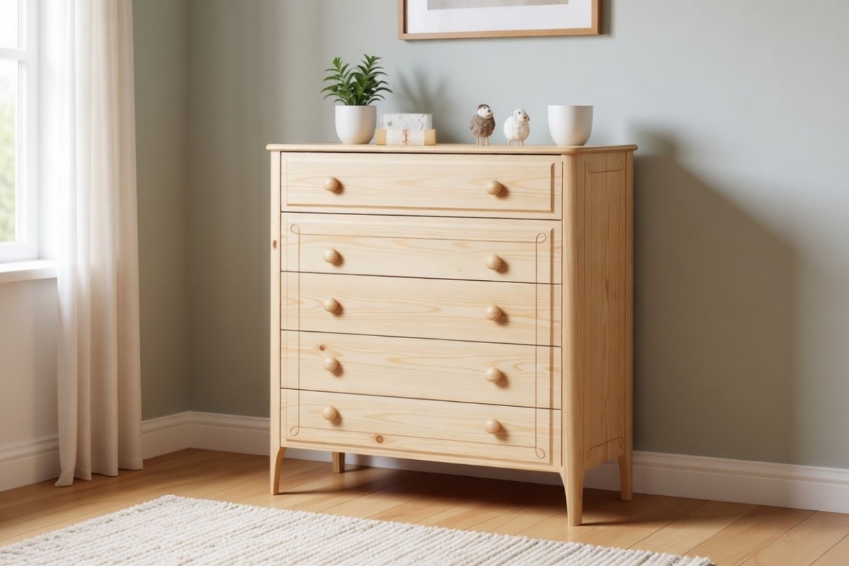 Материал изготовления: массив сосны. Задняя стенка и дно у ящиков ДВП белого цвета.