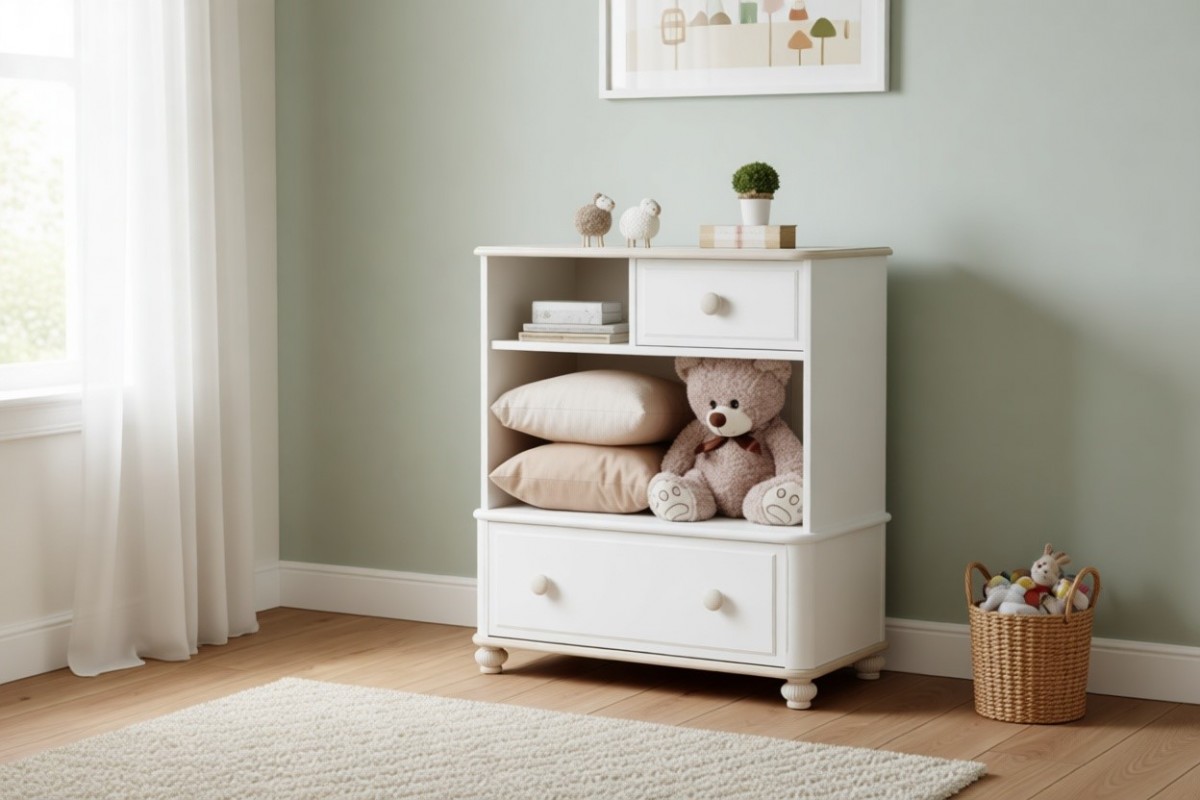 Материал изготовления: массив сосны. Дно у ящиков и задняя стенка - ДВП белого цвета