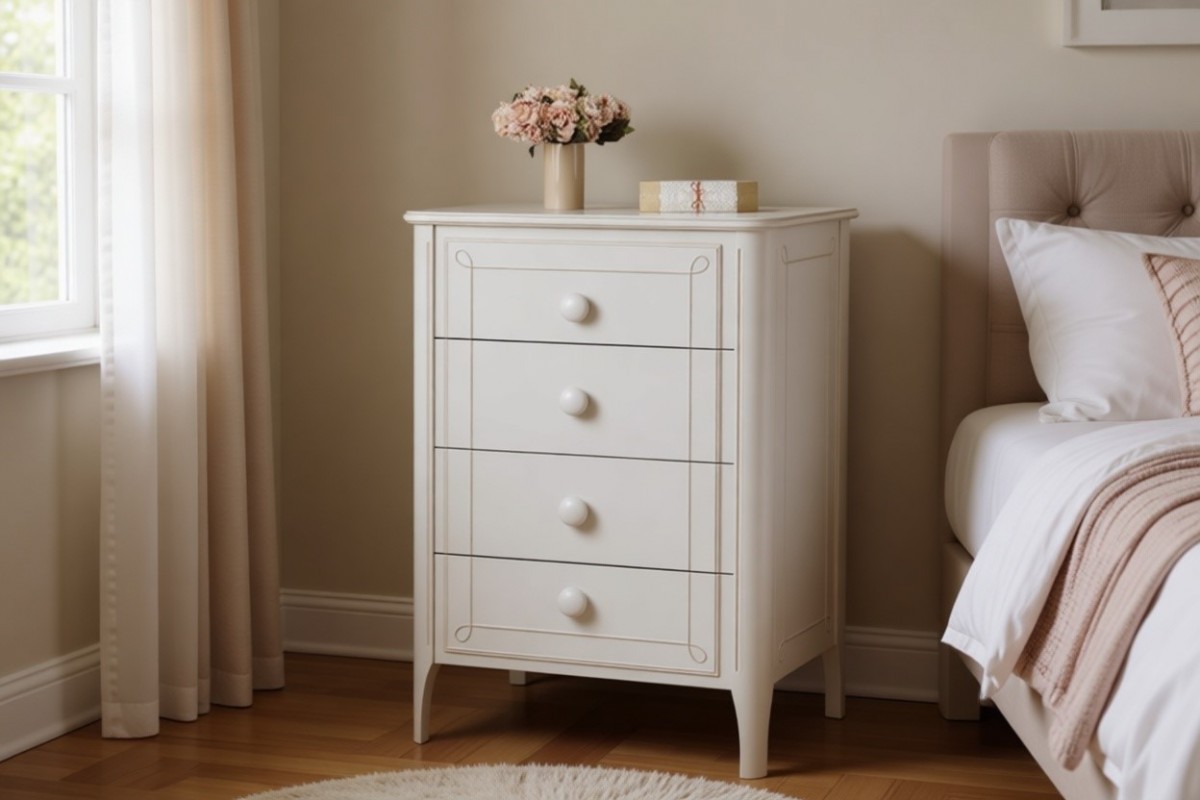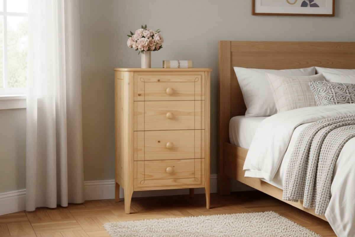 Материал изготовления: массив сосны. Дно у ящиков и задняя стенка - ДВП белого цвета.