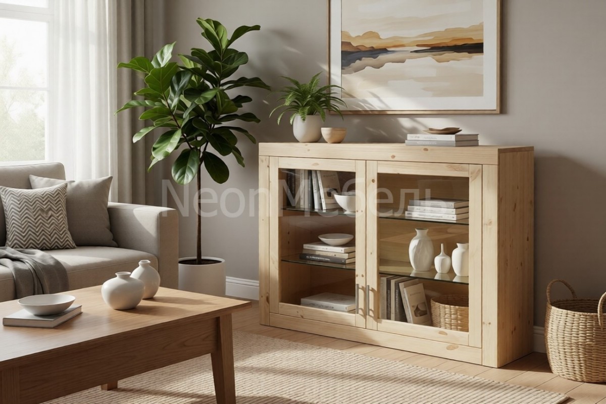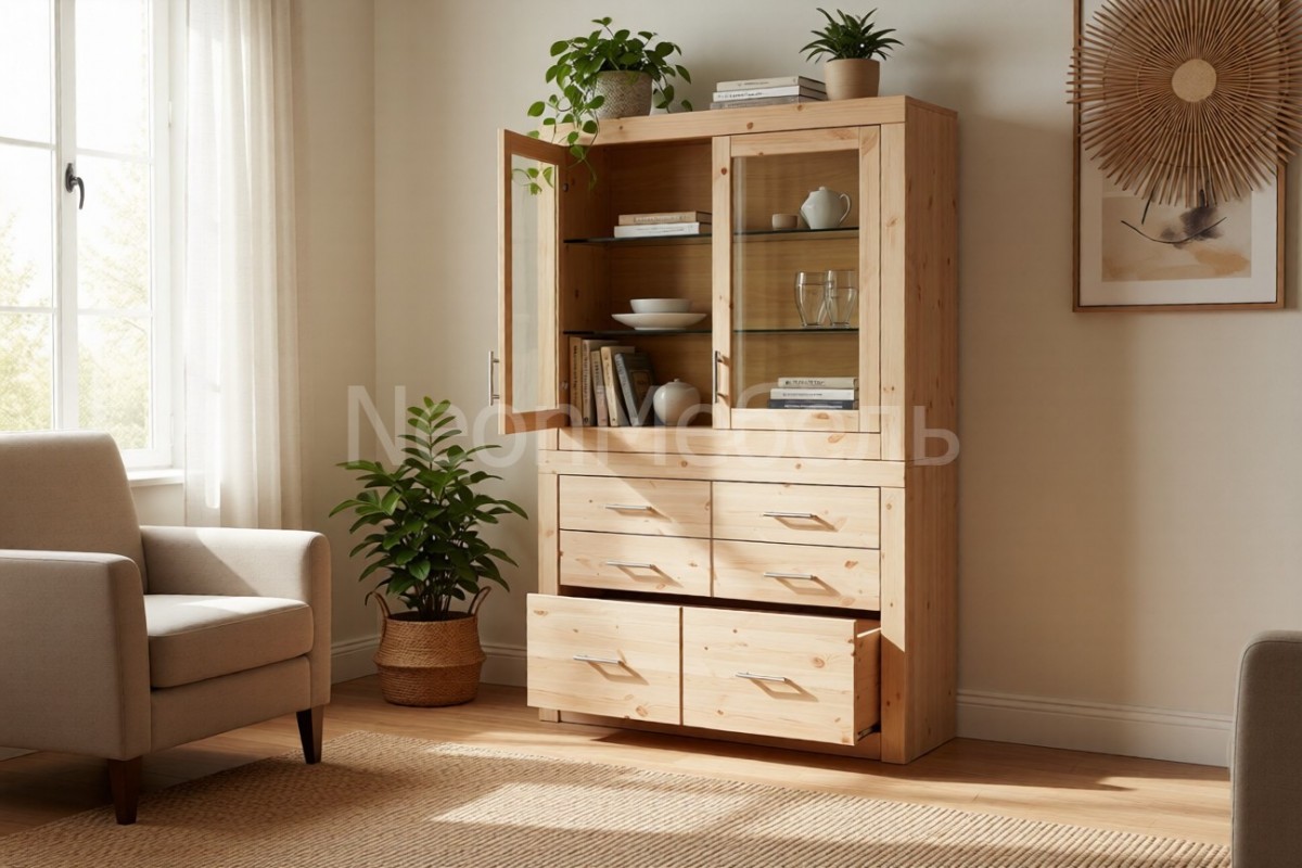 Материал изготовления: массив сосны. Задняя стенка: ДВП белого цвета (по желанию можно укомплектовать фанерой - в цвет изделия)