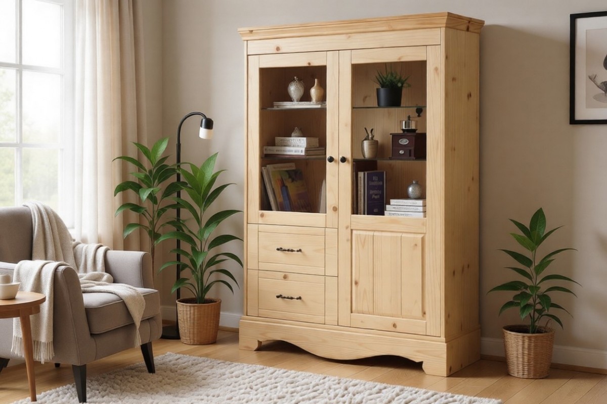 Материал изготовления: массив сосны. Задняя стенка и дно у ящиков: ДВП белого цвета (по желанию можно укомплектовать задней стенкой в цвет изделия).