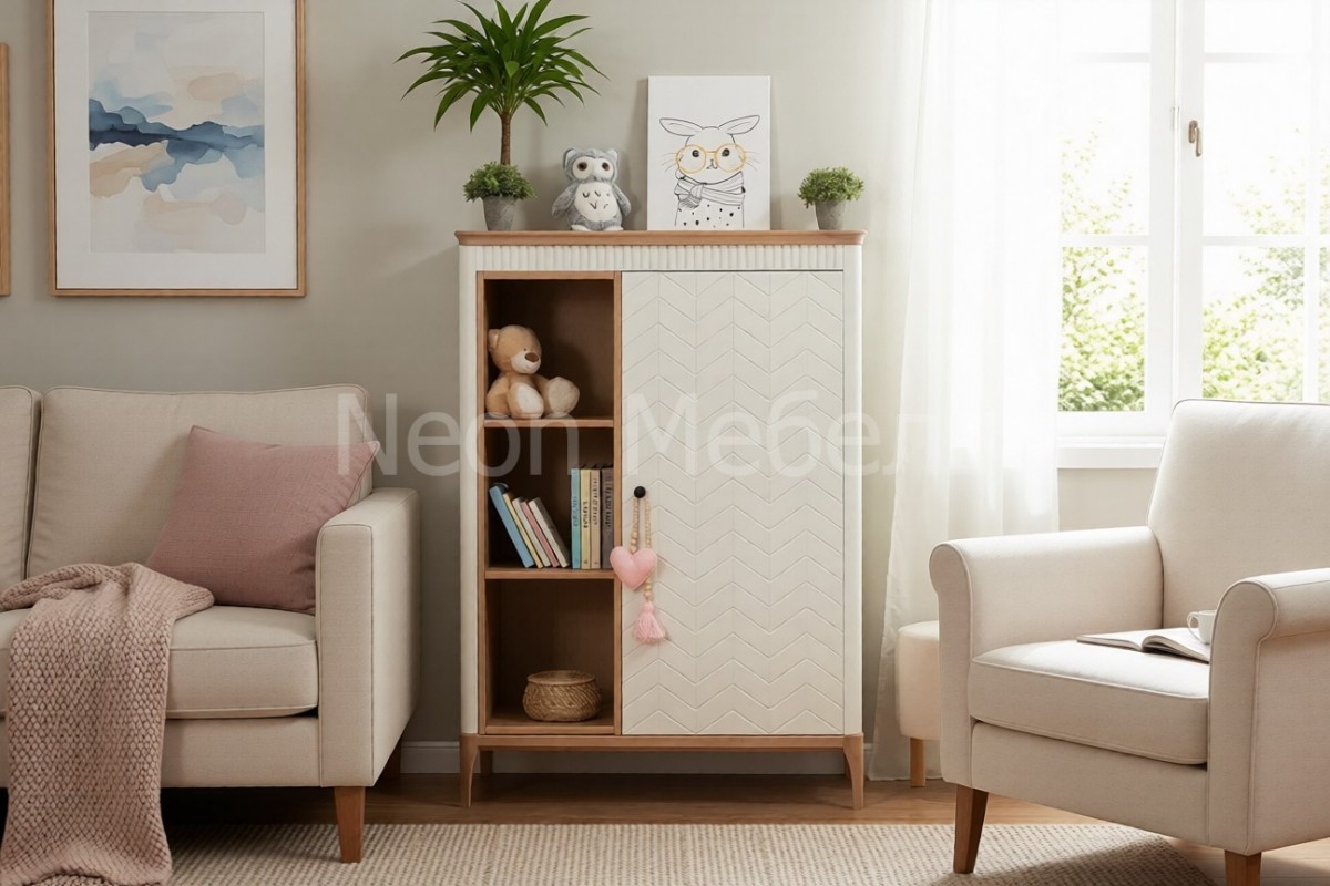 Невысокий одностворчатый шкаф для книг и одежды Грета №6
