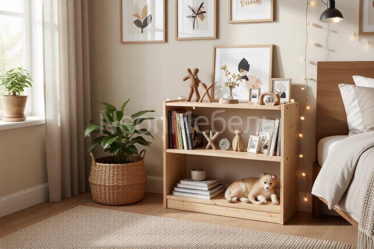 Низкий открытый стеллаж Классик №1 изготовлен из массива сосны. Конструкция прочная и устойчивая. Идеальное решение для дачи, городской квартиры и детской комнаты. Покрывается безопасными лаками или эмалями на выбор.