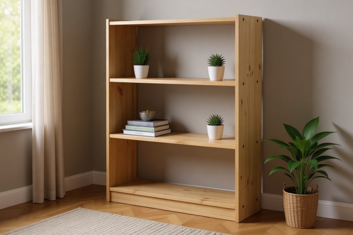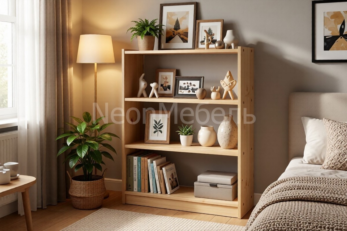 Невысокий открытый стеллаж Классик №2 с двумя полками изготовлен полностью из массива сосны. Покрывается лаками или эмалями на выбор, подходит для дачи, кухни и детской комнаты.