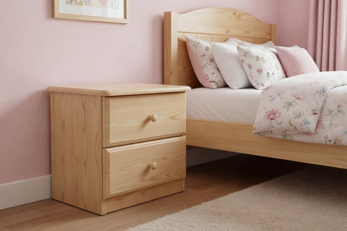 Материал изготовления: массив сосны. Дно у ящиков и задняя стенка - ДВП белого цвета.