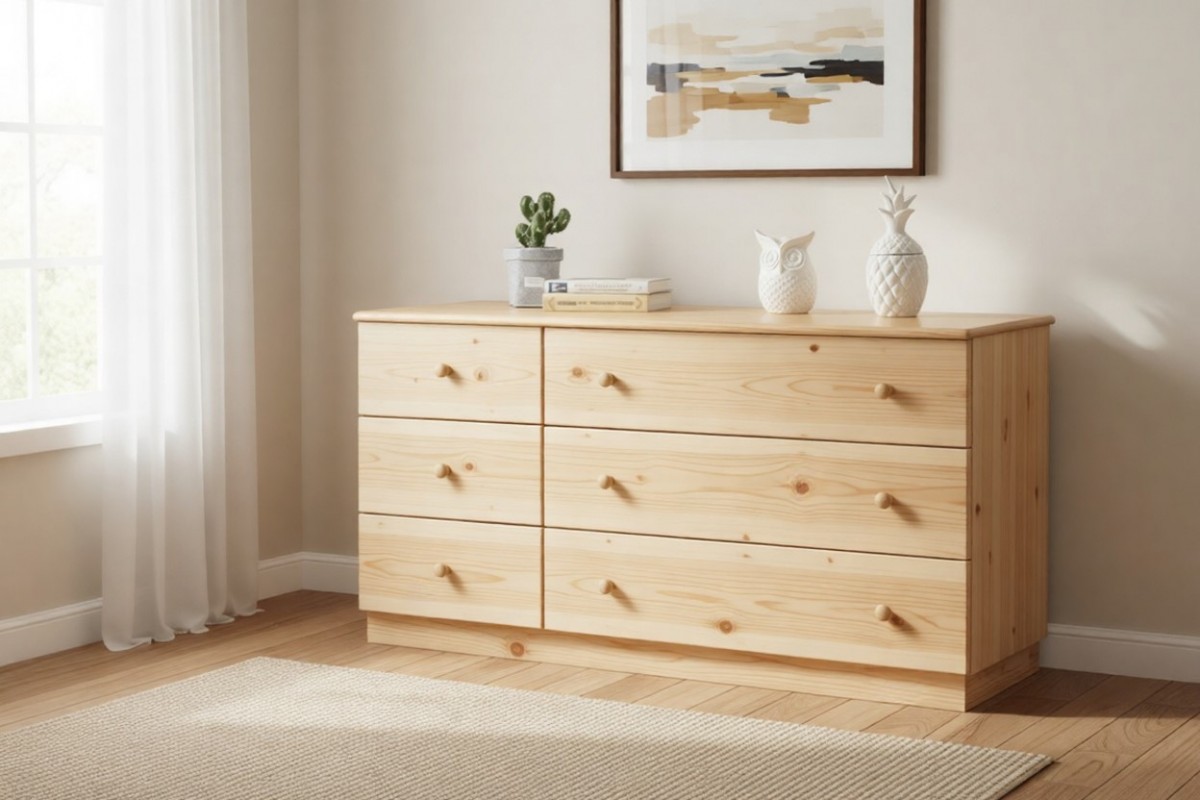 Материал изготовления: массив сосны. Дно у ящиков и задняя стенка: ДВП белого цвета.