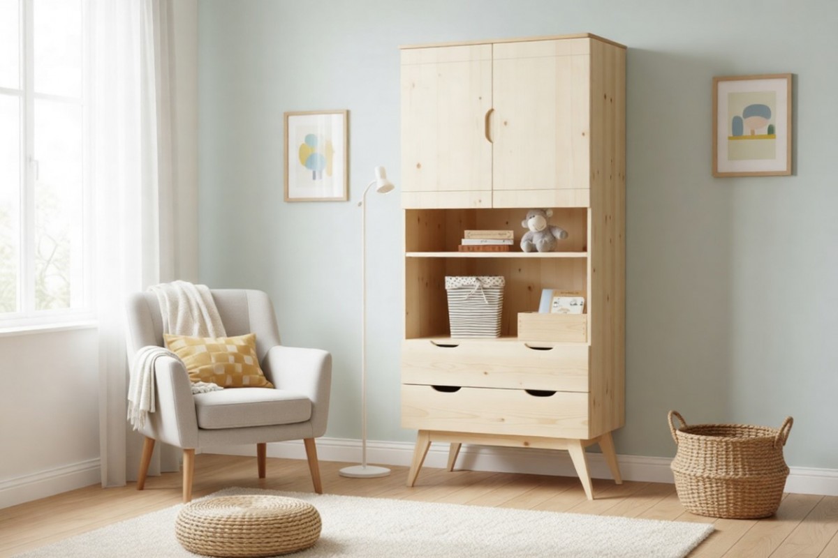 Материал изготовления: массив сосны. Задняя стенка и дно у ящиков - ДВП белого цвета