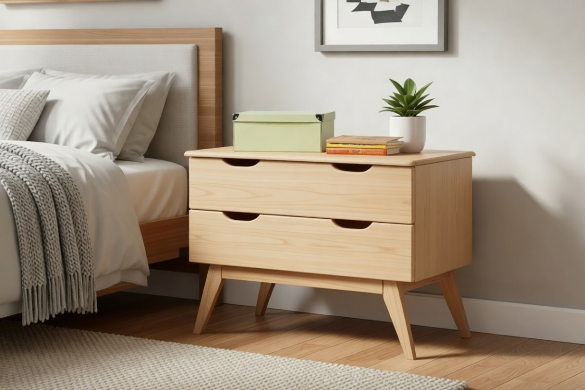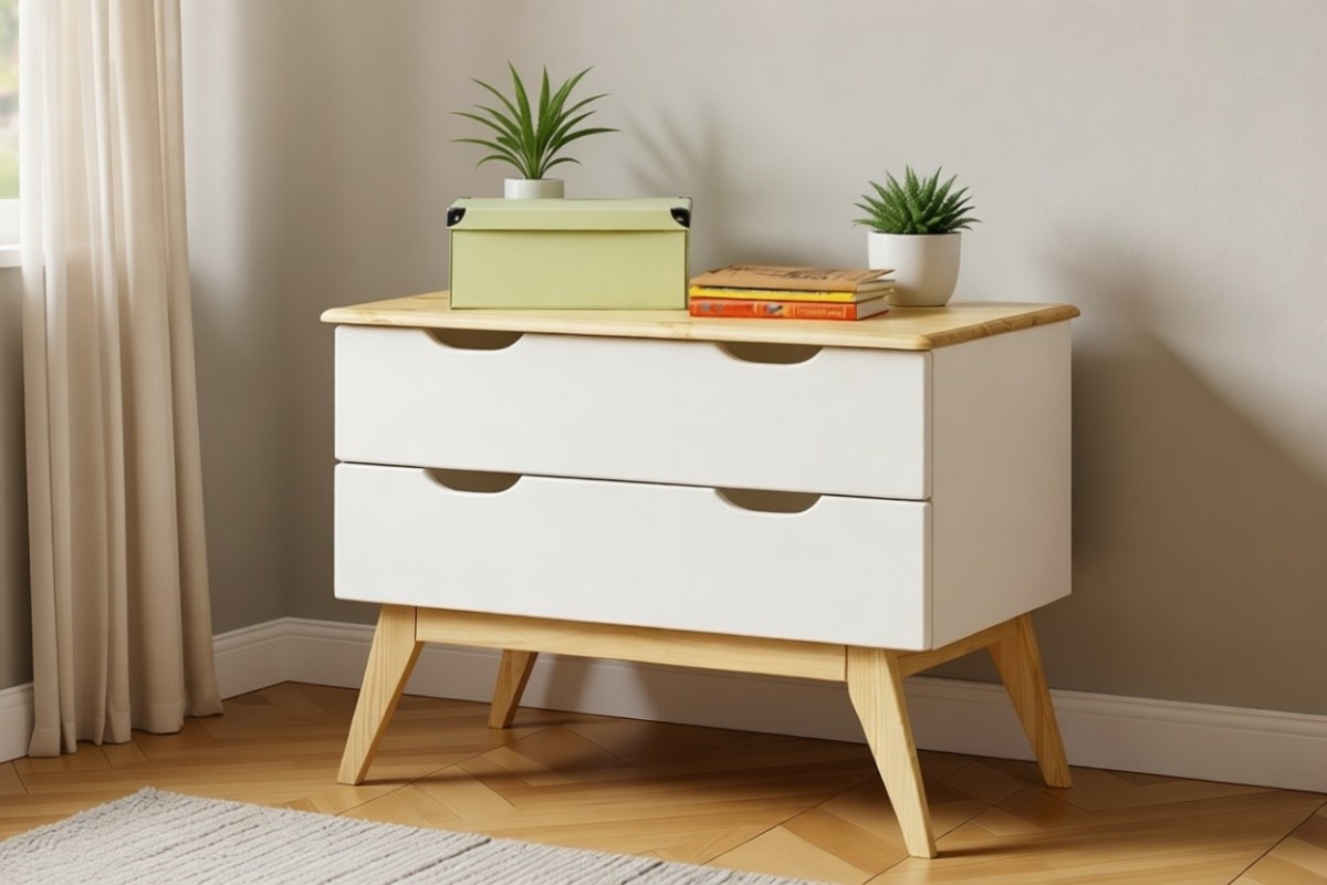 Материал изготовления: массив сосны. Дно у ящиков и задняя стенка - ДВП белого цвета.