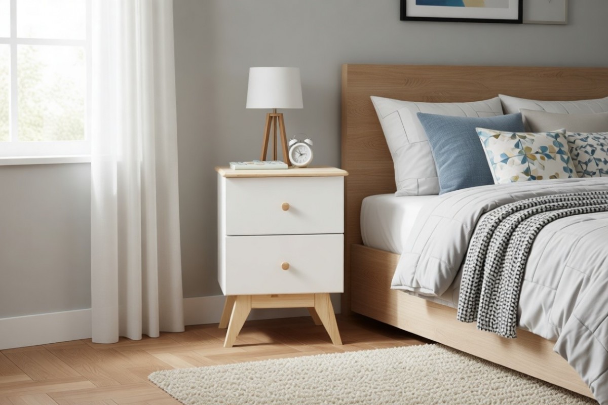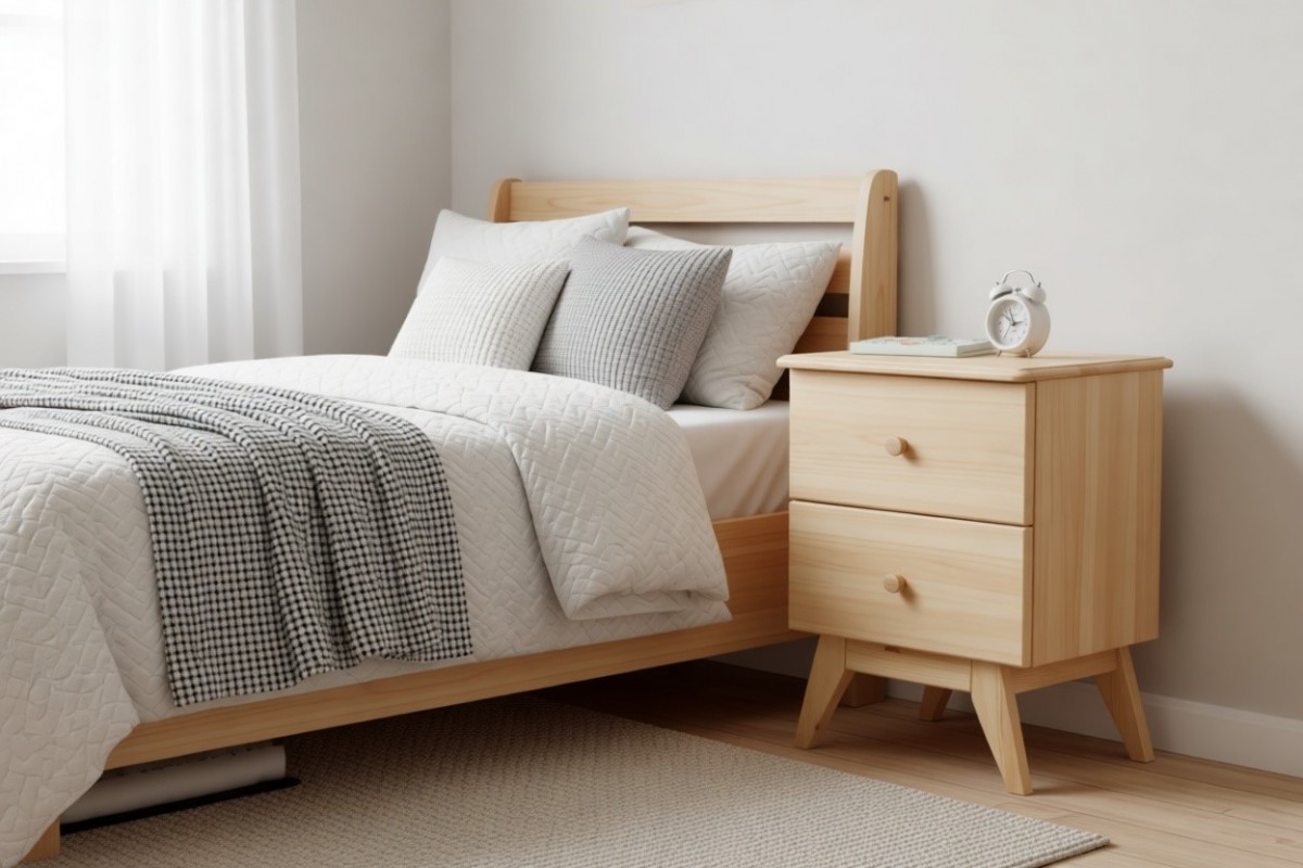 Материал изготовления: массив сосны. Дно у ящиков и задняя стенка - ДВП белого цвета.