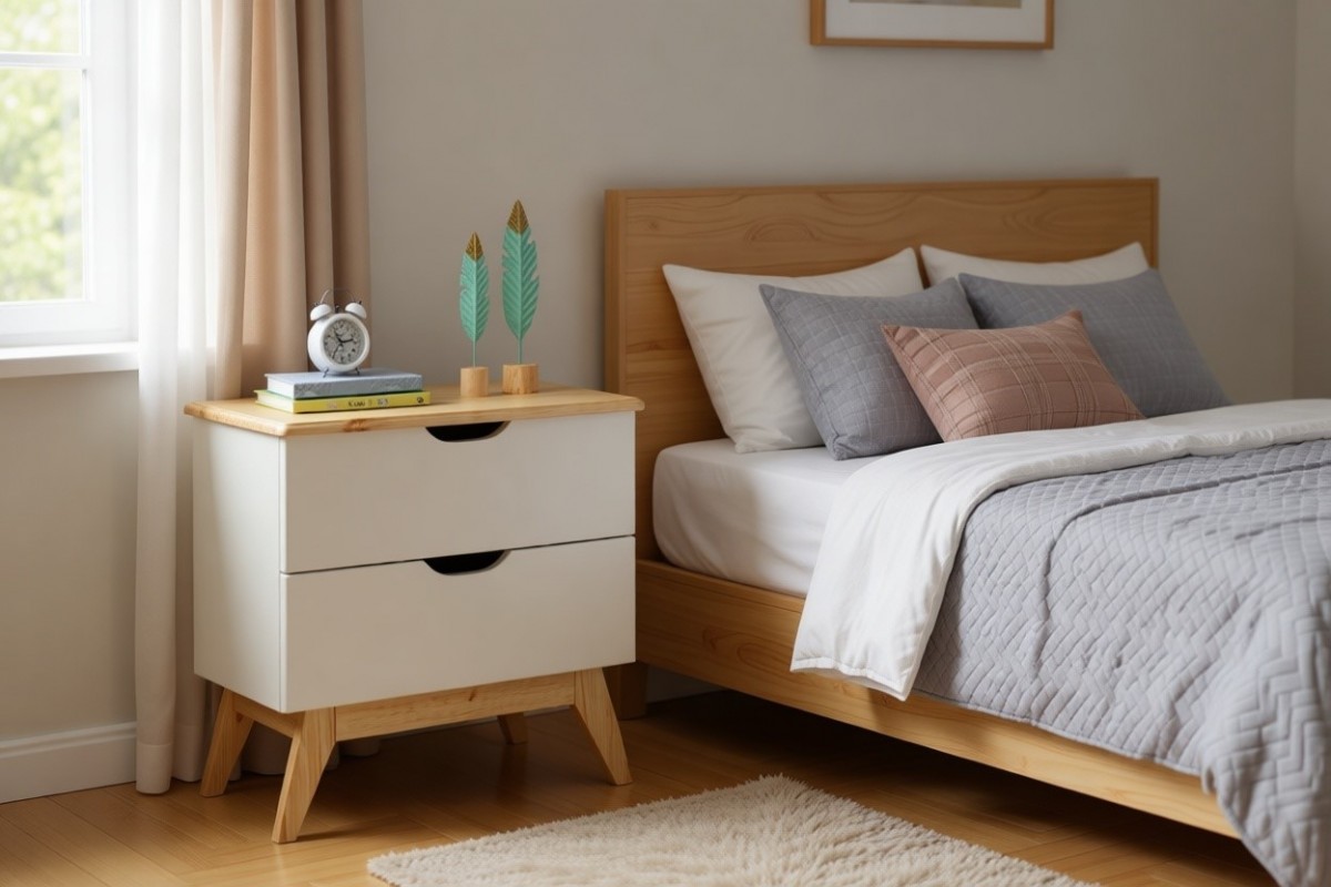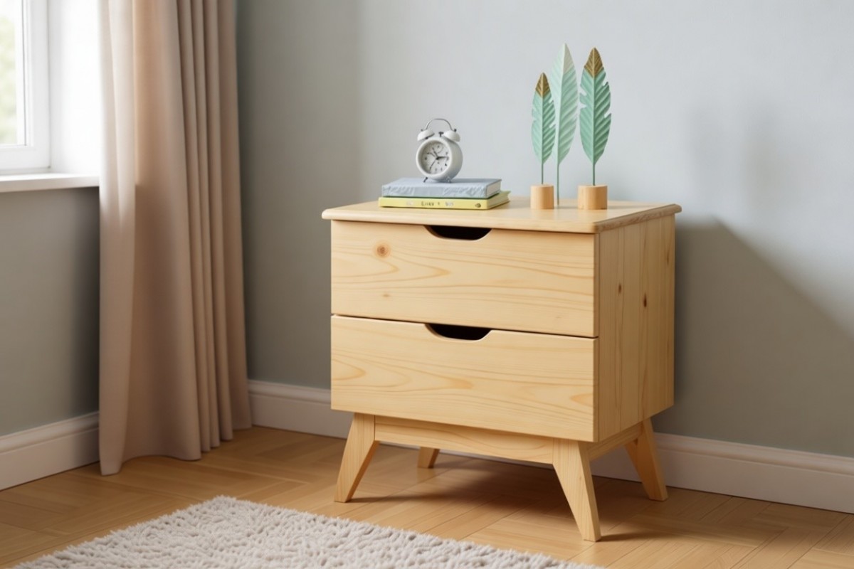 Материал изготовления: массив сосны. Дно у ящиков и задняя стенка - ДВП белого цвета.