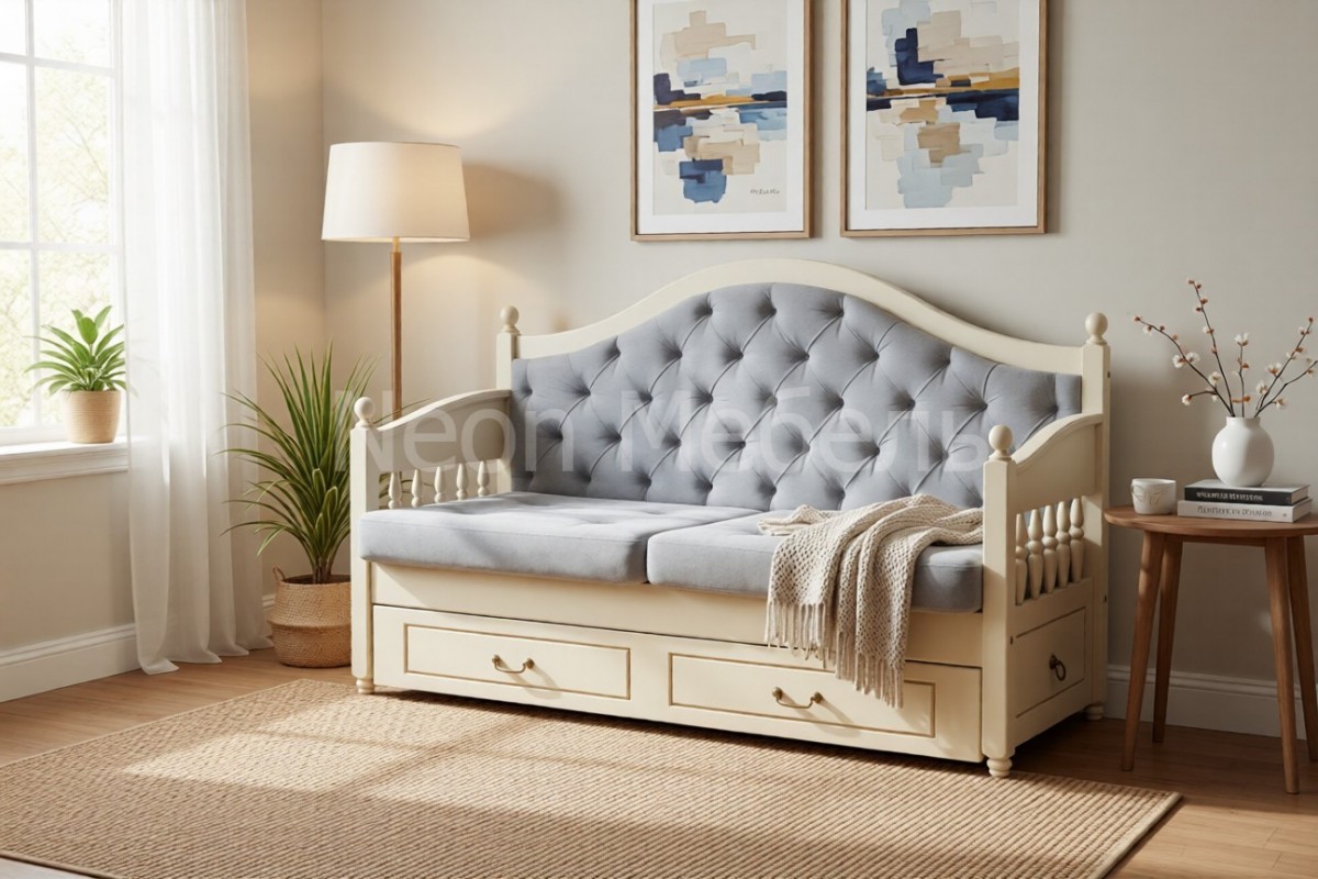 Дополнительно можно заказать мягкие валики (как на фото). Вариант отделки мягкой спинки - каретная стяжка.