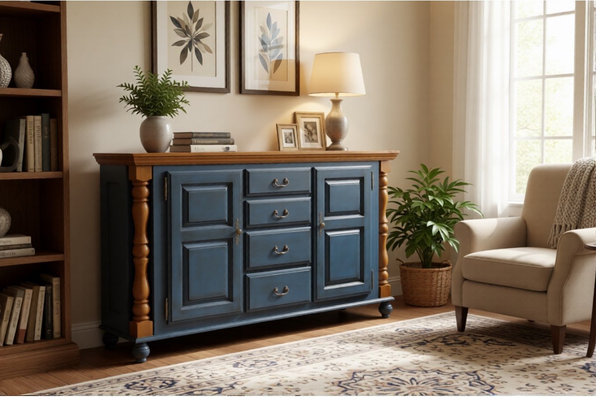 Наполнение: четыре выдвижных ящика и два закрытых отделения с полками.