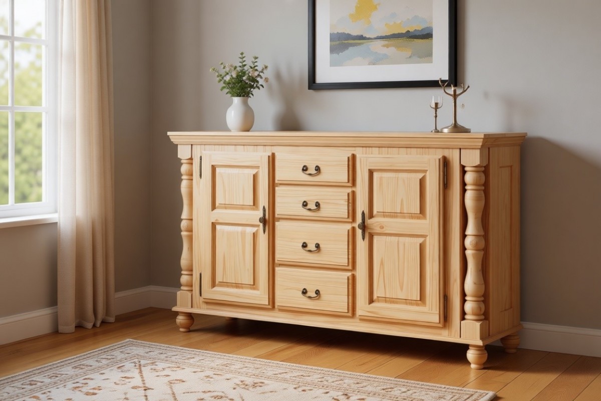 Материал изготовления: массив сосны. Дно у ящиков и задняя стенка: ДВП белого цвета.