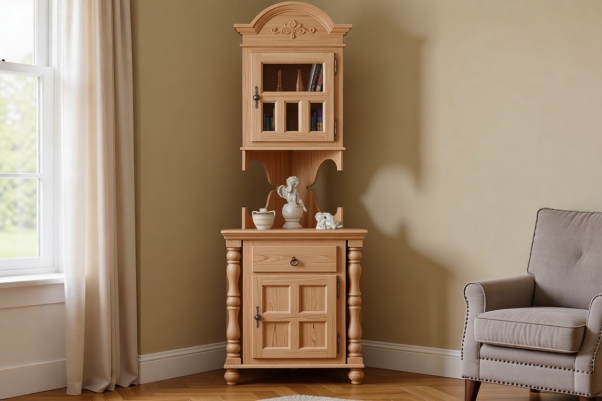 Угловой сервант Валенсия 2-28 изготовлен из натурального дерева - а именно массива настоящей карельской сосны, данный материал достаточно прочнее и тверже чем среднеевропейская сосна, и поэтому данный предмет мебели прослужит не для одного поколения. Покрывается качественными лаками и эмалями на выбор, также возможно покрытие шпоном дуба.